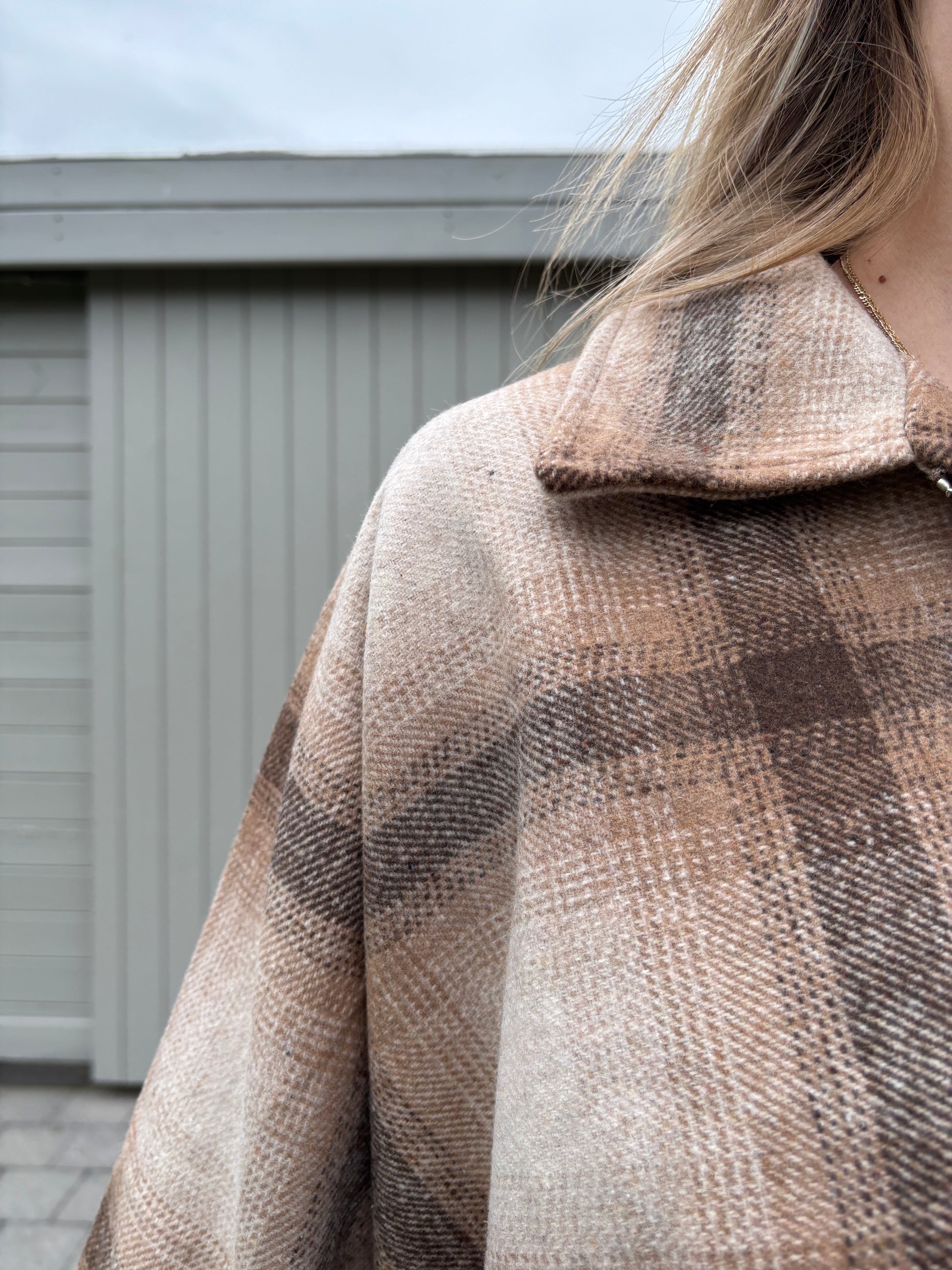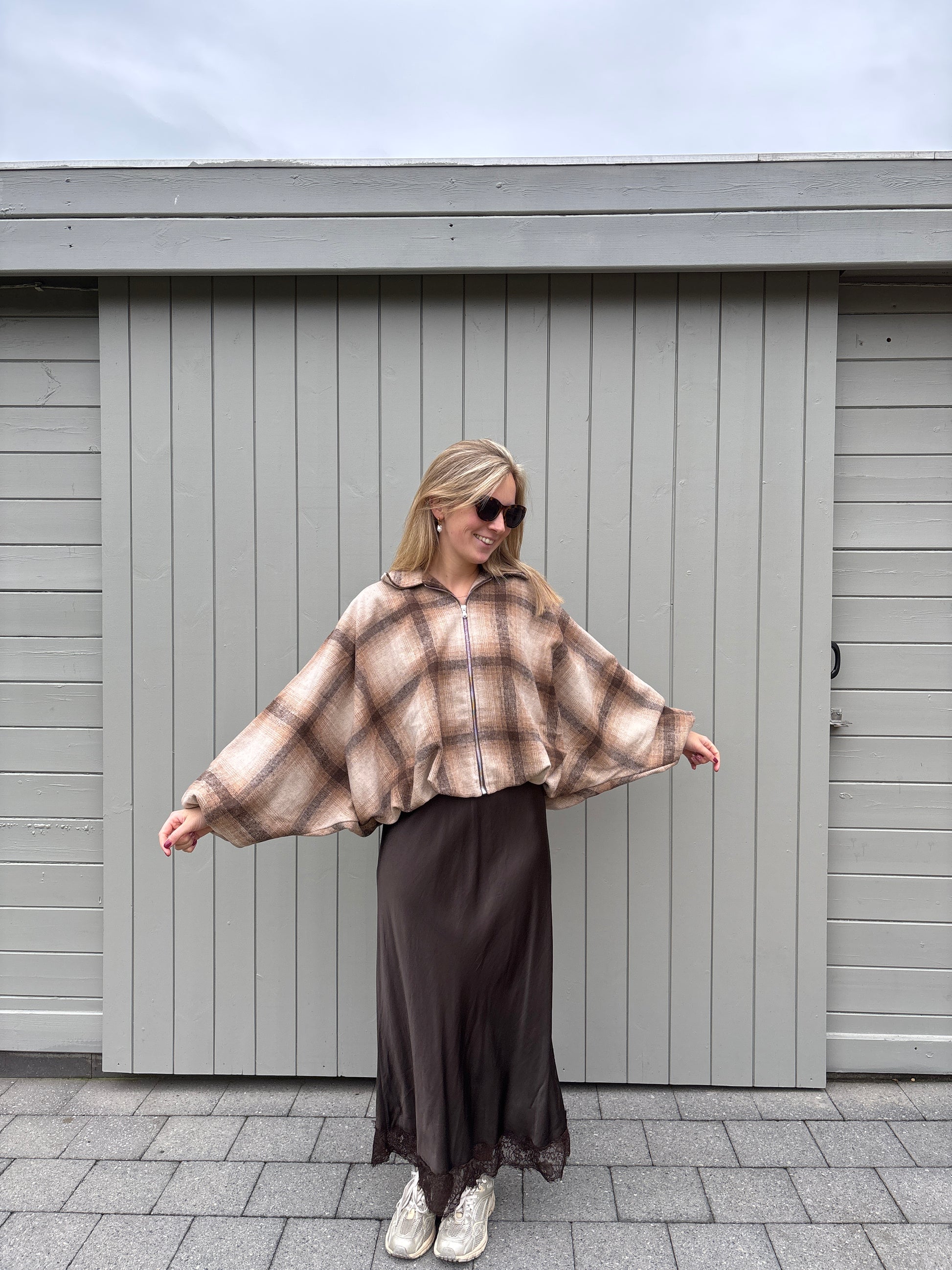 Deze jas is one size maar valt breed door de vlindermouwen.