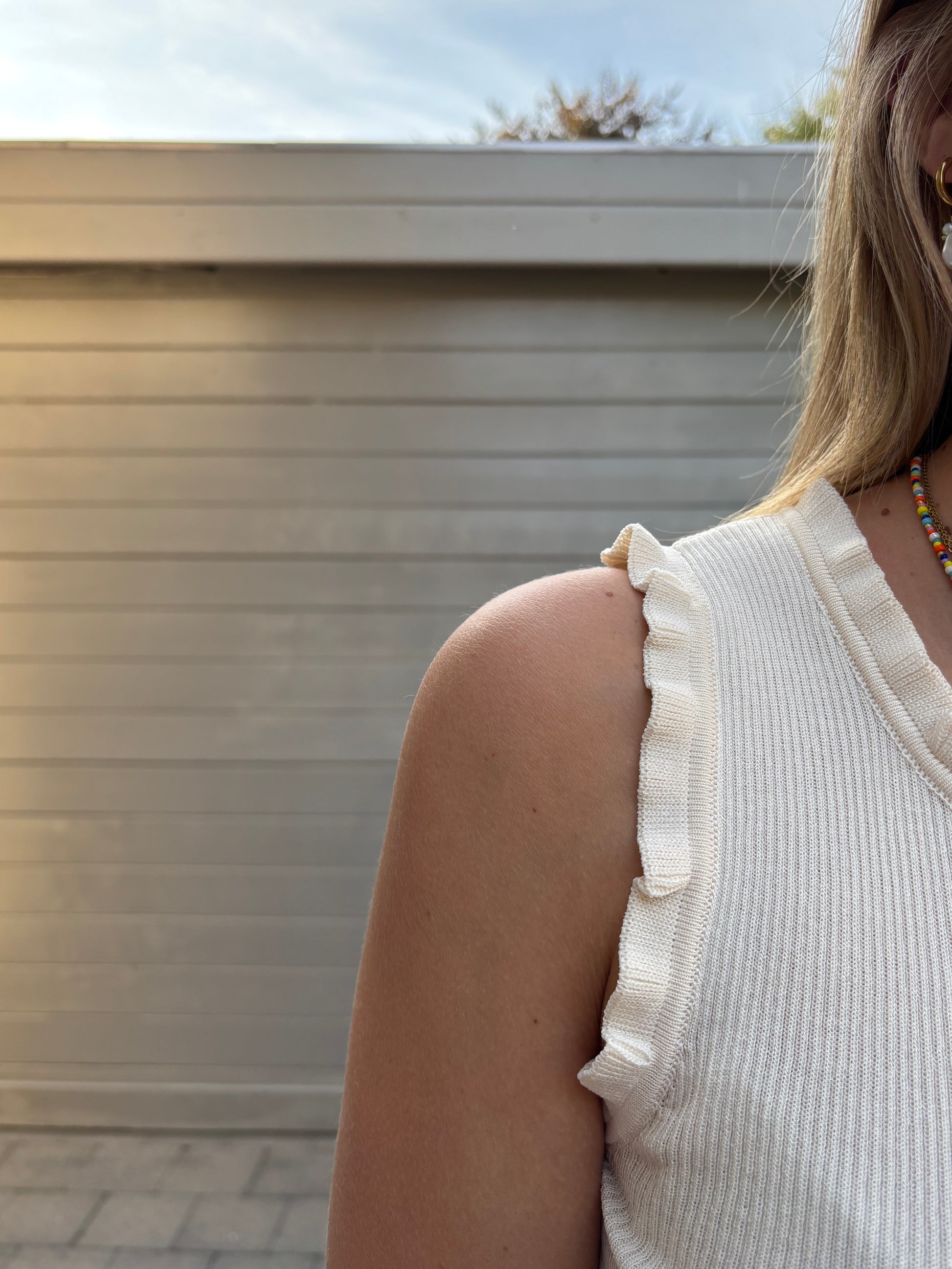 Het is een iets dikkere stof. Een perfect topje voor nu.