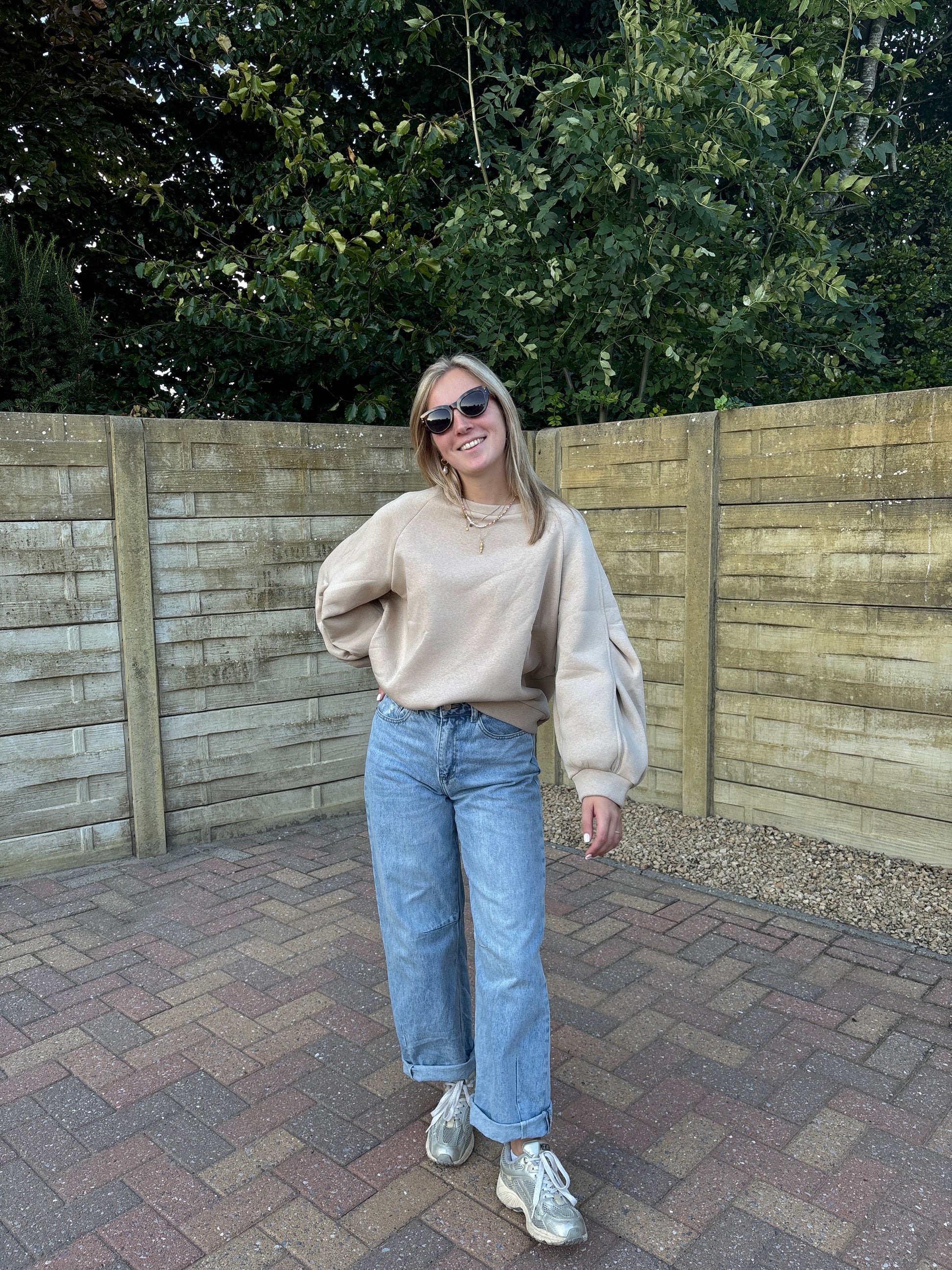 De sweater heeft een leuke afwerking aan de mouwen en fleece binnenin.