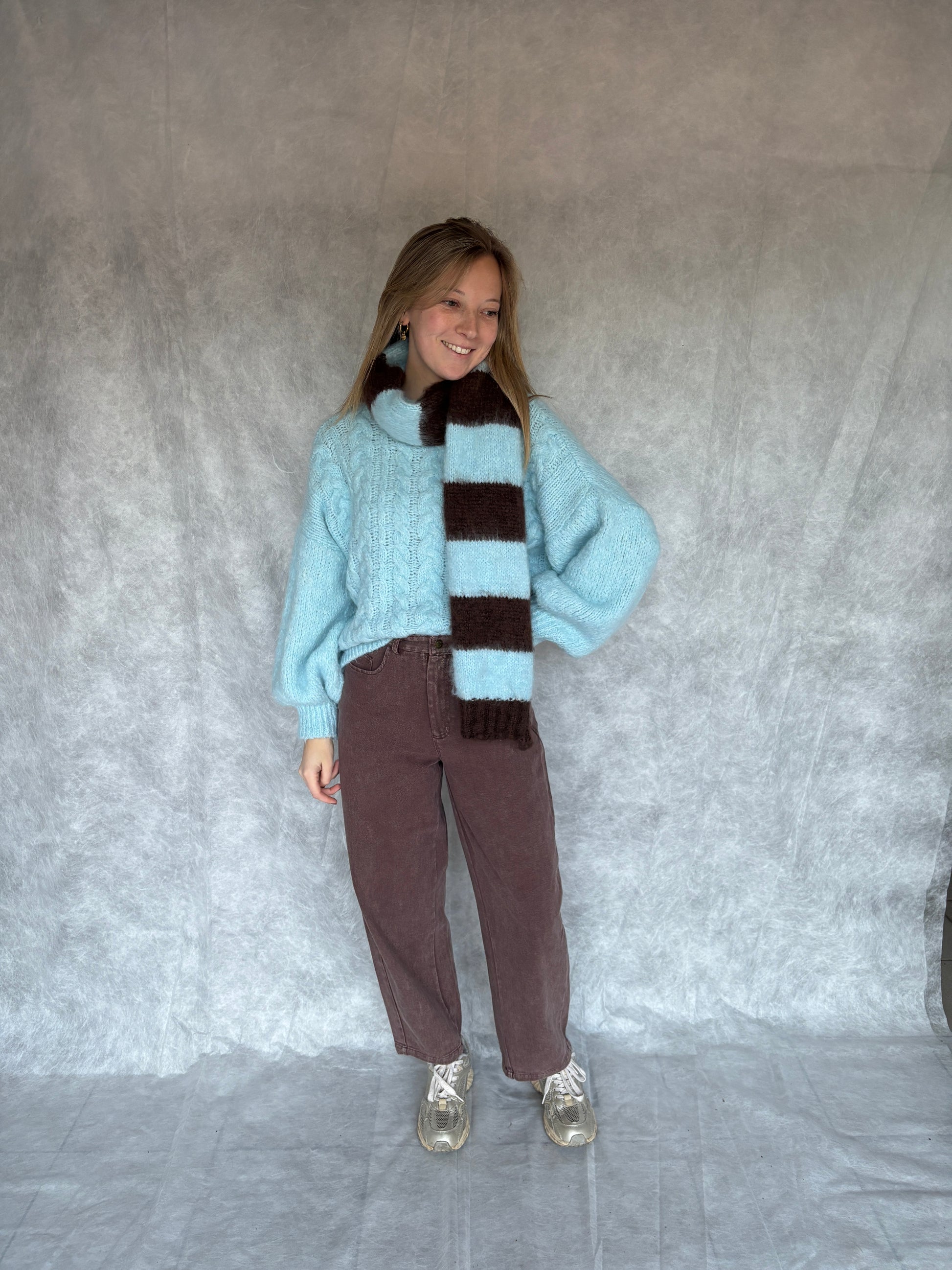 Nell sjaal - bruin/lichtblauw