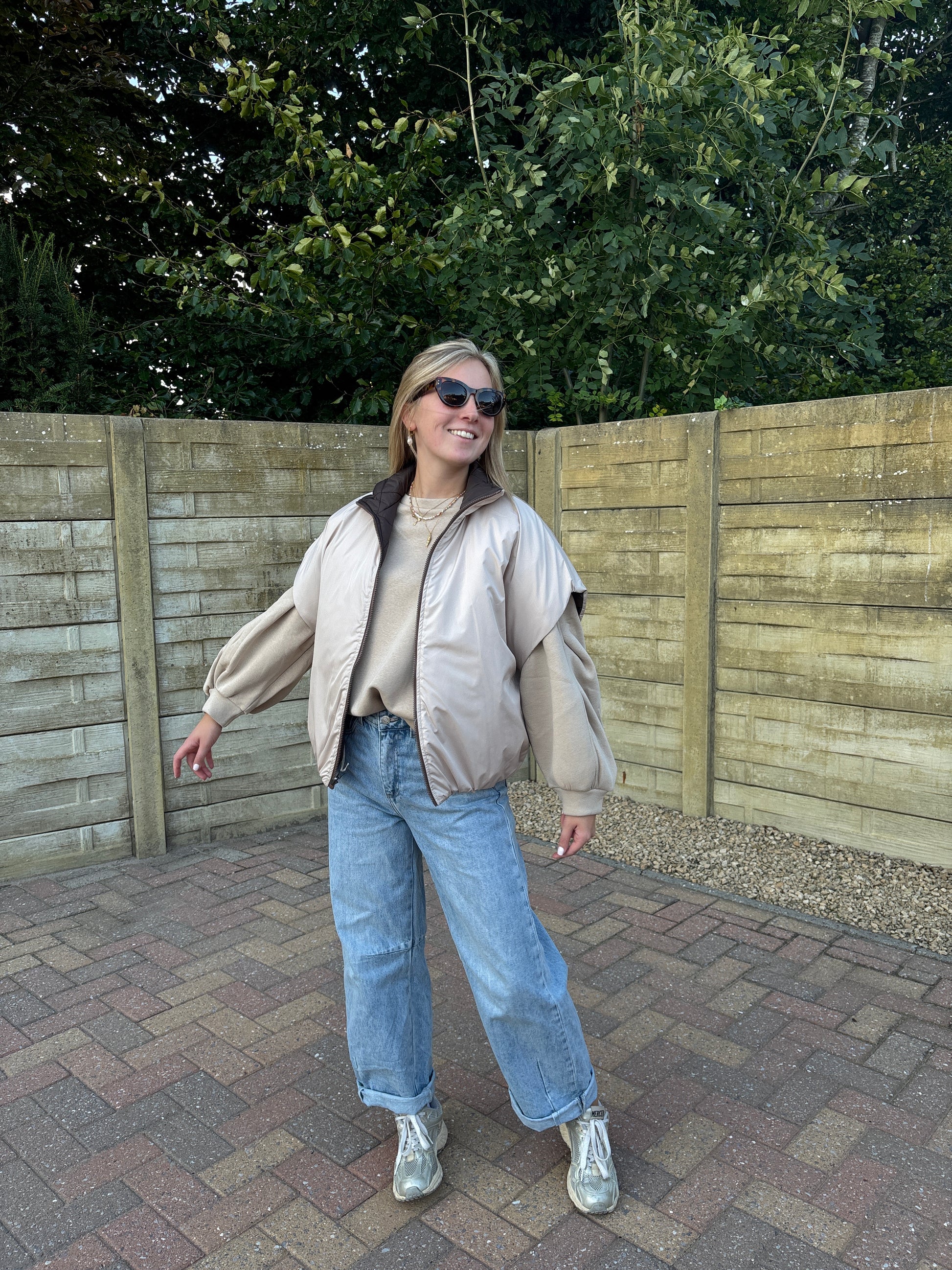 Het is omkeerbaar. Je kan het dragen in het donkerblauw of in kobaltblauw.