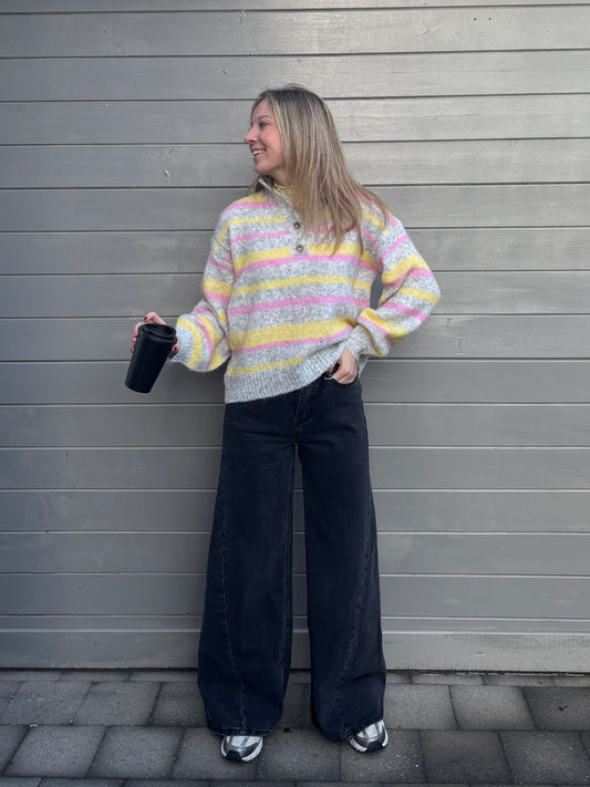 Sille polotrui - grijs/roze/geel